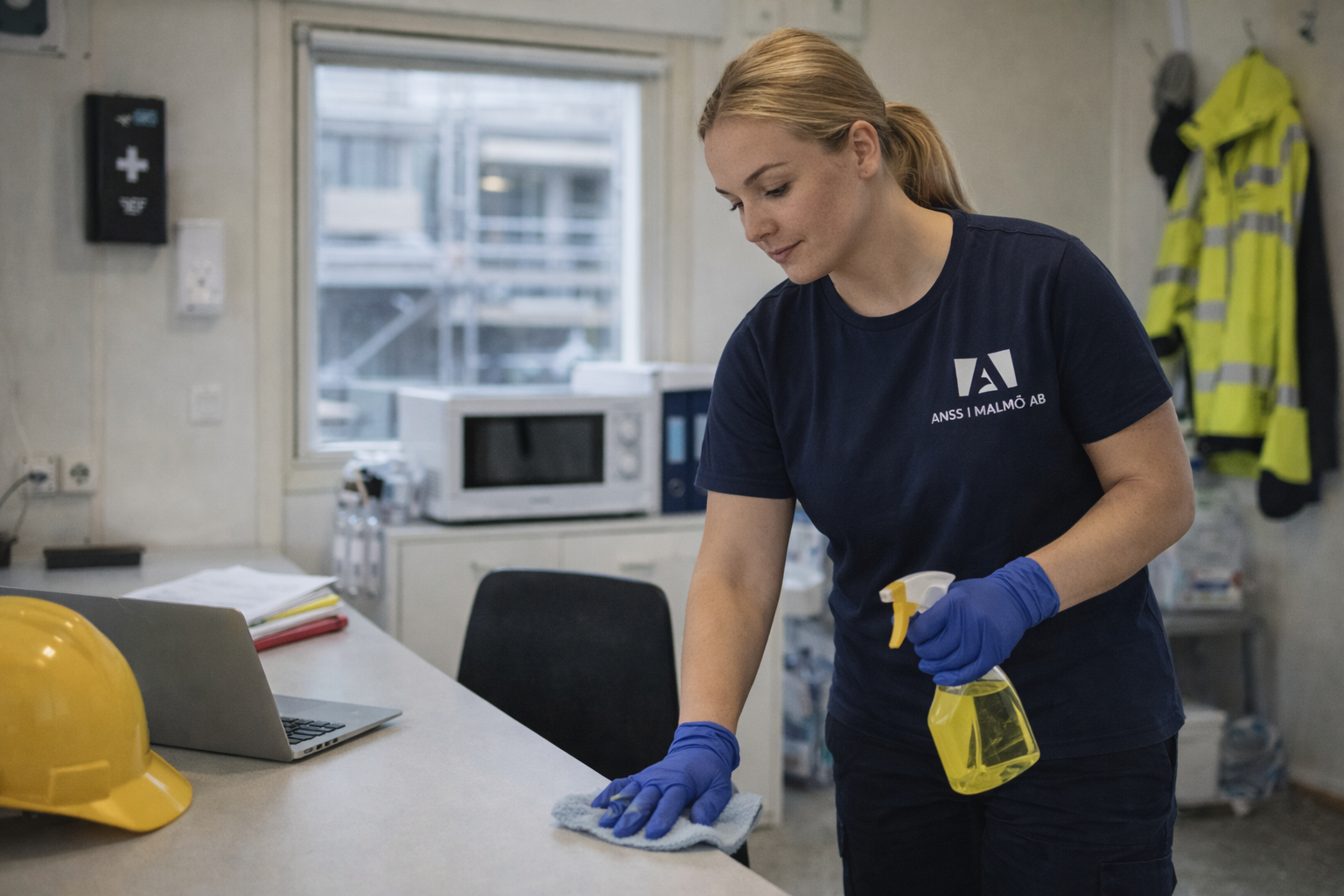Vi håller etableringsbodar och arbetsutrymmen rena, fräscha och representativa.